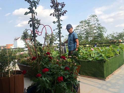 Dù rất bận rộn với công việc kinh doanh nhưng mỗi ngày, anh đều tranh thủ khoảng 30 phút buổi sáng và 30 phút buổi chiều để lên chăm sóc khu vườn sân thượng. Theo anh, chỉ cần sắp xếp khoa học sẽ đỡ rất nhiều sức người. Là doanh nhân, anh coi sân thượng là một thử thách, tập thêm sự sáng tạo, kiên nhẫn.