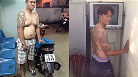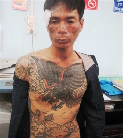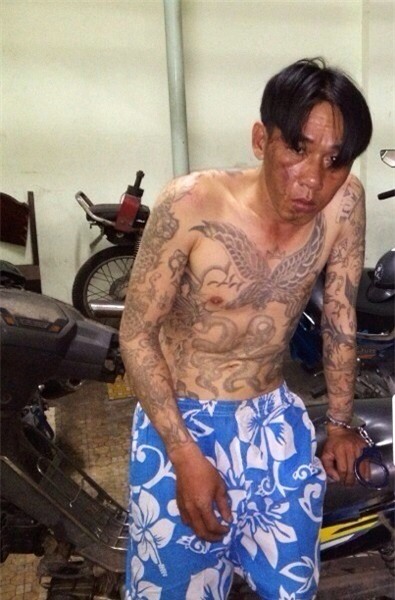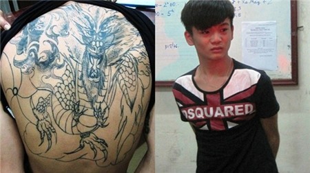 Bộ hình xăm rồng kín ngực, 2 tay của tên cướp giật. Tên này dùng dây xích chống trả lại cảnh sát giao thông khi bị truy đuổi.