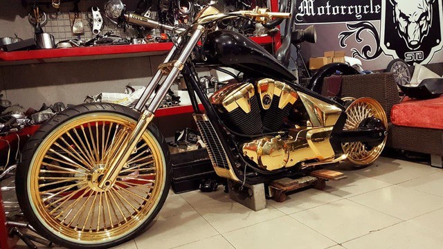 Những chiếc mô tô phân khối lớn mạ vàng được thực hiện tại STD Motorcycle Custom, nơi độ mô tô cho nhiều đại gia có tiếng tại Việt Nam.