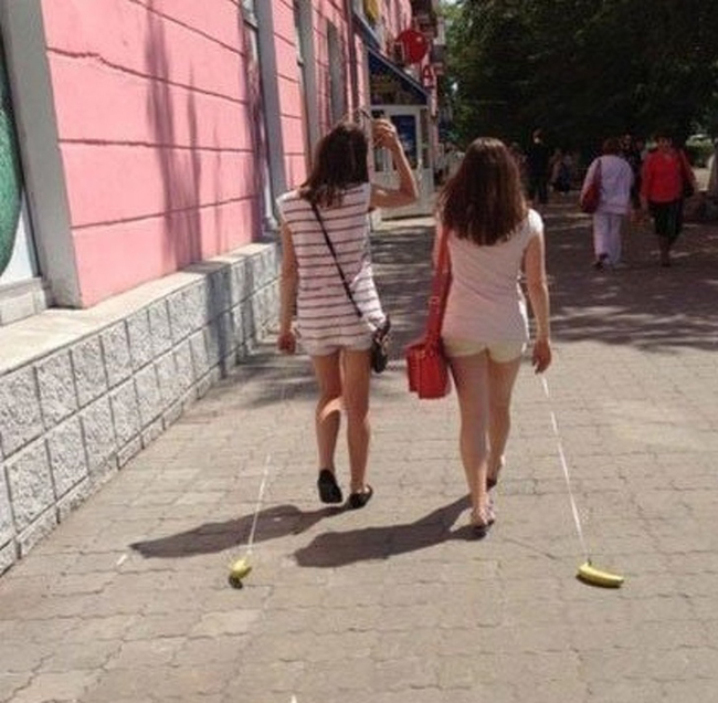 Các cô gái rảnh rỗi dẫn "thú cưng" đi dạo.