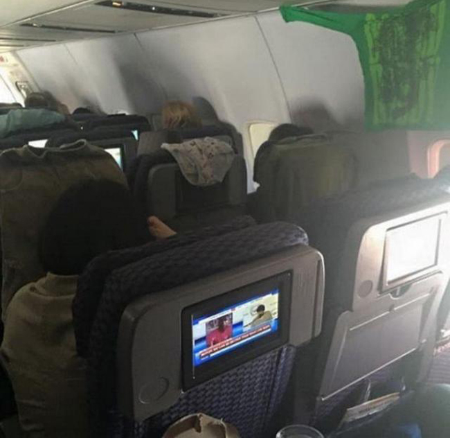 Tranh thủ phơi quần áo trên máy bay luôn.