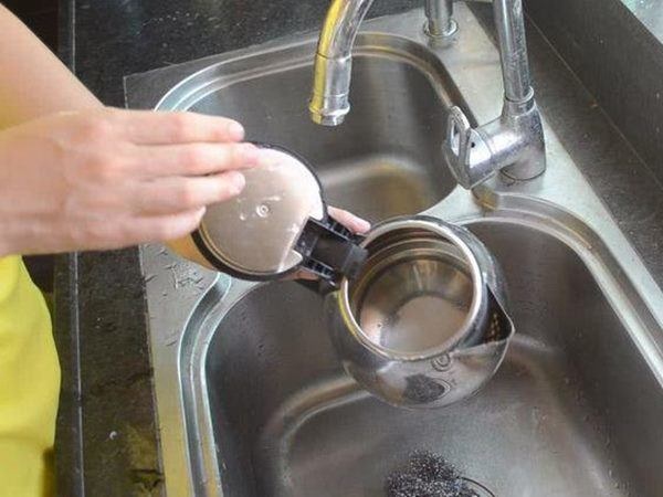 - Bạn hãy đổ nước trong ấm đi và rửa lại bằng nước sạch là được. Thường xuyên vệ sinh ấm siêu tốc theo cách này để ấm sạch sẽ, hoạt động bền và hiệu quả hơn.