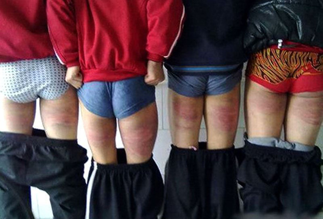Một trường hợp khác đó là ông Vương người Trung Quốc, vì muốn phụ đạo cho con chuẩn bị thi lên lớp, nhưng sau khi tan ca ông về tới nhà thì thấy con đi chơi. Quá bực tức, ông Vương đánh liên tiếp vào mông con: "Tới tối hôm đó, mông cháu nó sưng vù lên, sốt 38.8 độ C, gia đình tôi vội đưa cháu tới bệnh viện" - ông Vương chia sẻ với sự hối hận tột độ.
