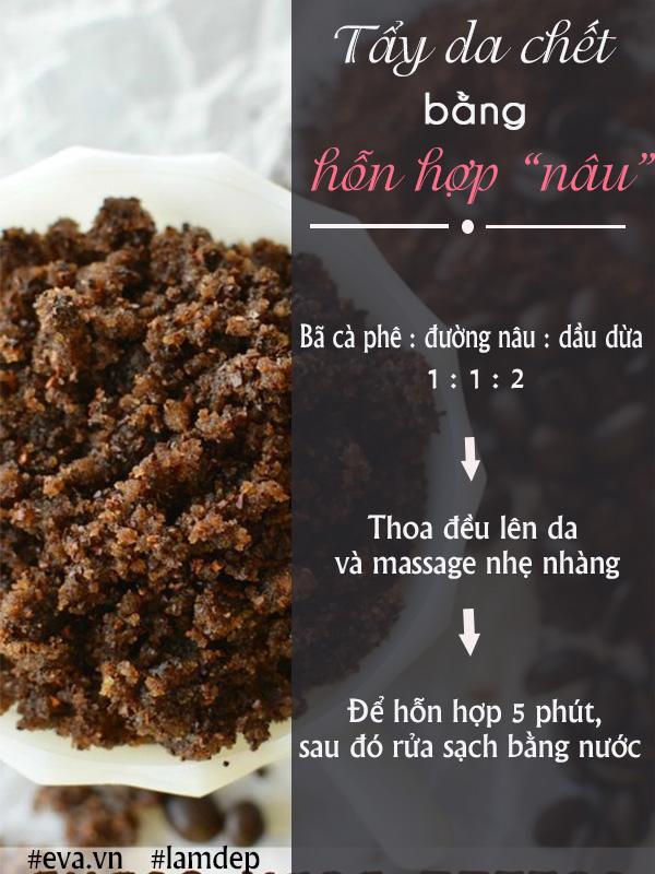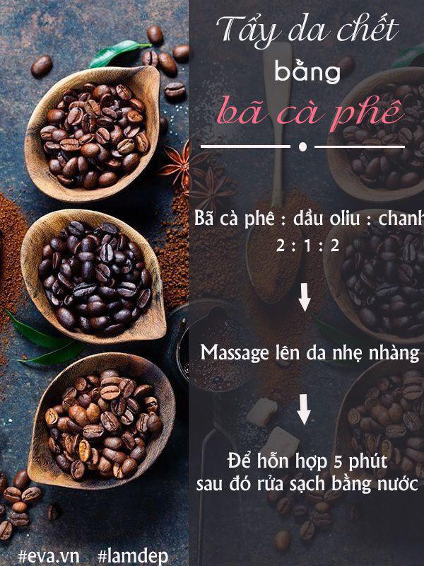 Có thể các nàng chưa biết, trong cà phê có chứa nhiều chất chống oxy hóa, chất caffein, nicotinic (niacin)… giúp tẩy sạch lớp sừng già nua và bụi bẩn trong lỗ chân lông. Vì thế, sau mỗi lần sử dụng cà phê vào buổi sáng, các chị em đừng vội vứt bỏ phần bã của nó mà hãy tận dụng để giúp làn da chúng ta mềm mịn, khoẻ sạch hơn.