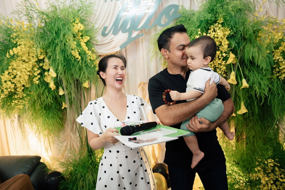 Chủ nhân bữa tiệc - bé Chaudhary An Quốc tên gọi thân mật là Milo lên đồ bảnh bao. Quý tử sở hữu vẻ ngoài bụ bẫm, đáng yêu, đôi mắt tròn xoe. Nhóc tỳ được nhận xét sở hữu nhiều nét đẹp lai Ấn Độ từ cả bố lẫn mẹ.