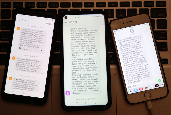 Tất cả các thuê bao di động của các nhà mạng tại Việt Nam đều đã nhận được tin nhắn cảnh báo về dịch nCoV.