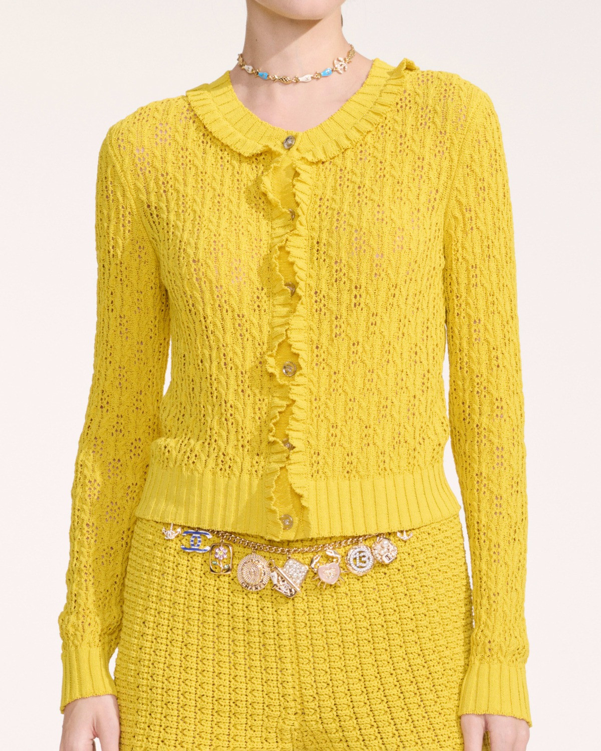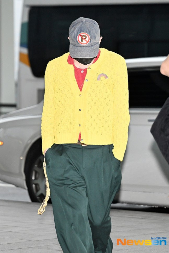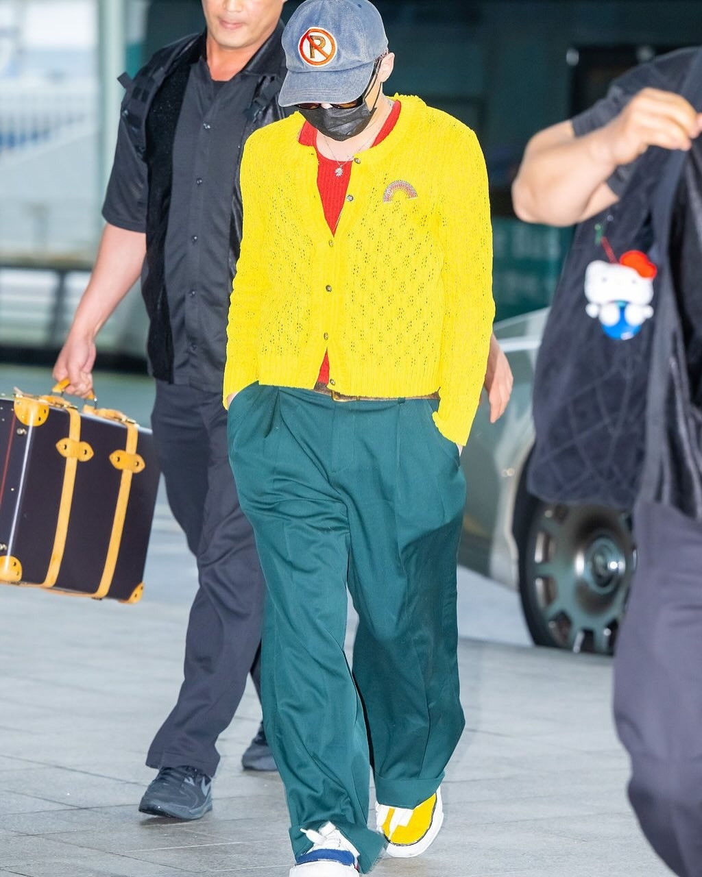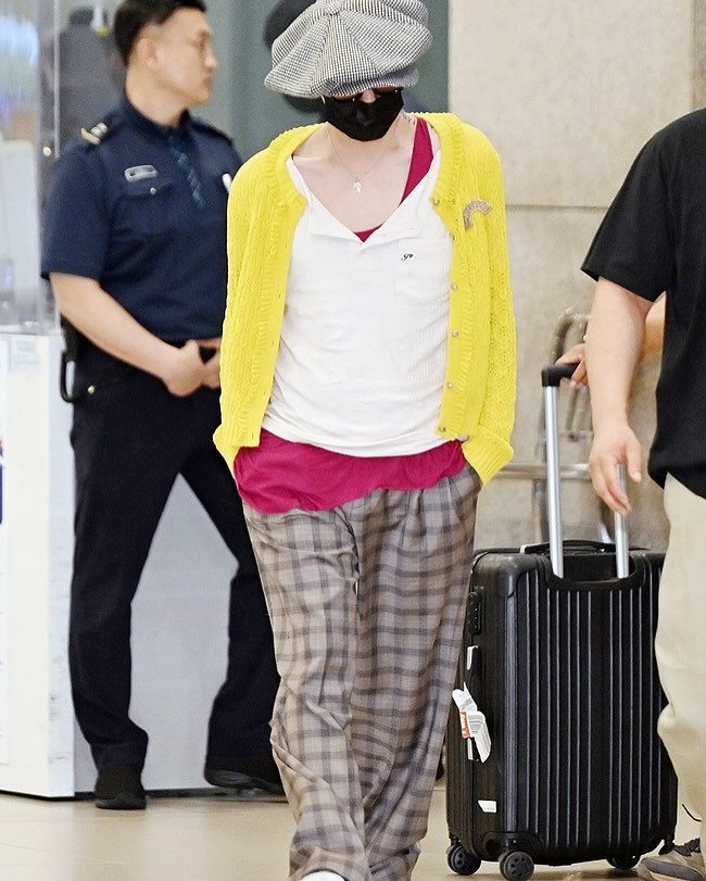 Đây không phải lần đầu tiên G-Dragon diện thiết kế này. Chiếc cardigan mang phong cách "bà thím" là mẫu áo nam idol yêu thích, từng mặc trong một lần xuất hiện hồi đầu năm.