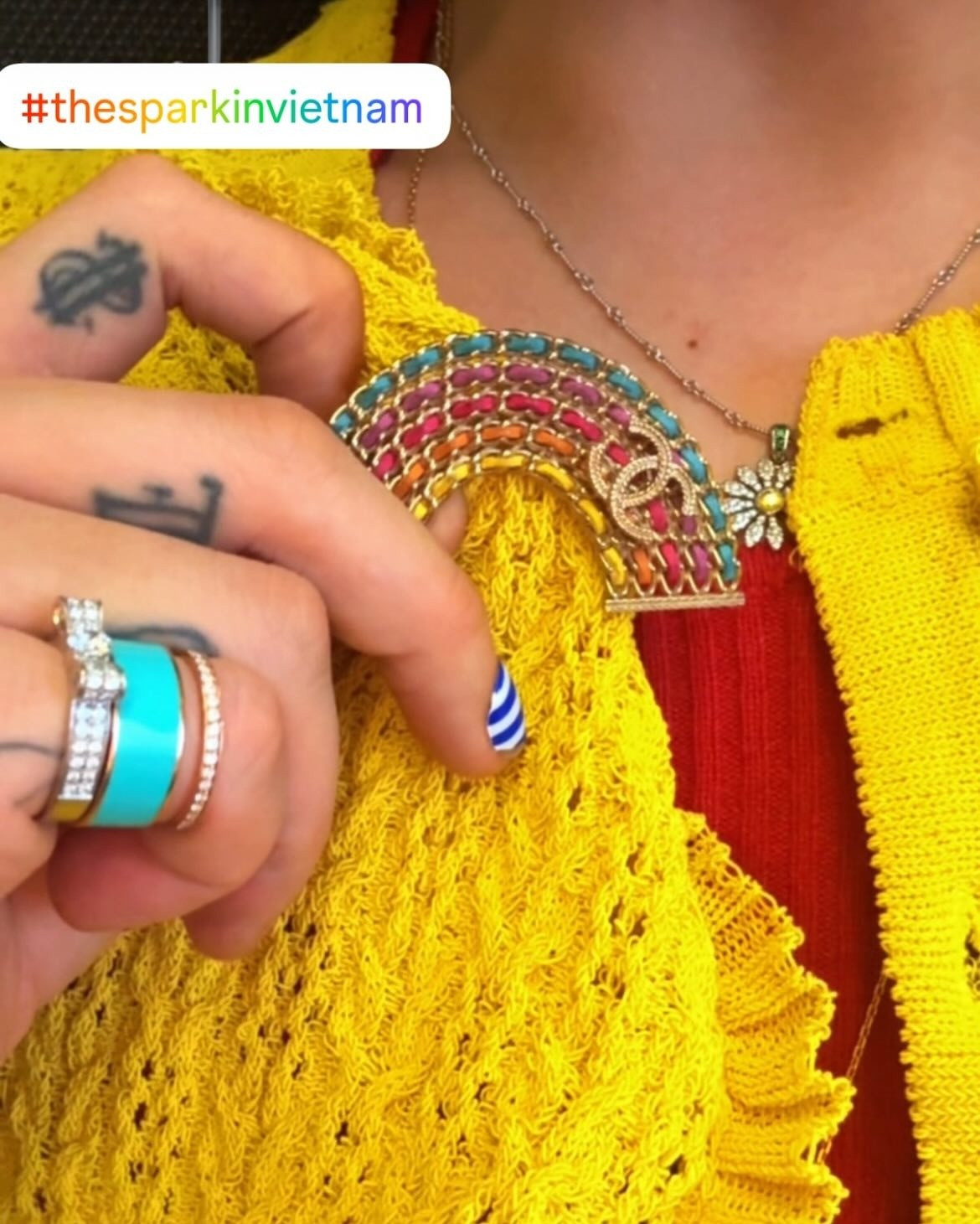 Tối 21/6, mega concert quy tụ dàn line-up toàn ngôi sao đình đám như CL, DPR IAN, TEMPEST, triplesS, Quang Hùng MasterD và đặc biệt là “ông hoàng Kpop” G-Dragon đã thu hút hàng chục nghìn khán giả tới tham dựNgay khi hình ảnh G-Dragon xuất hiện ở sân bay Hàn Quốc để sang Việt Nam đã khiến người hâm mộ "đứng ngồi không yên". Xuất hiện ở sân bay, nam ca sĩ xuất hiện trong bộ trang phục mang hai sắc đỏ và vàng gồm áo cardigan, top và quần ống rộng. Sự kết hợp màu sắc này được nhiều người hâm mộ Việt Nam nhận xét là tinh tế.Outfit sân bay của G-Dragon khi các tín đồ thời trang bóc giá khiến dân tình không khỏi choáng váng.Thiết kế áo cardigan theo phong cách unisex đến từ nhà mốt Chanel mà nam ca sĩ diện có giá giá bán 3.200 USD (khoảng 84 triệu đồng).Trên ngực áo, thần tượng Hàn Quốc cài chiếc brooch hình cầu vồng cũng của Chanel. Item này có giá 525 USD (khoảng 14 triệu đồng).Điểm nhấn đặc biệt đến từ mũ lưỡi trai thuộc thương hiệu Peaceminusone do chính G‑Dragon sáng lập. Phiên bản giới hạn của chiếc mũ này từng gây sốt khi liên tục cháy hàng và hiện được định giá lên tới hơn 14 triệu đồng, trong khi các bản cũ hoặc đã qua sử dụng vẫn được rao bán trên thị trường với giá từ 2 đến 5 triệu đồng. Còn đôi giày của G-Dragon cũng là phiên bản đặc biệt của thương hiệu Maison Mihara Yasuhiro, có giá bán trên website vào khoảng 106 triệu đồng.Đúng trưa 12h ngày 22/6, GD lên đường trở lại Hàn Quốc. Anh gây chú ý khi mặc lại set trang phục từng diện cách đó hai hôm, tuy nhiên mix thêm áo trắng và quần kẻ caro theo phong cách khác.