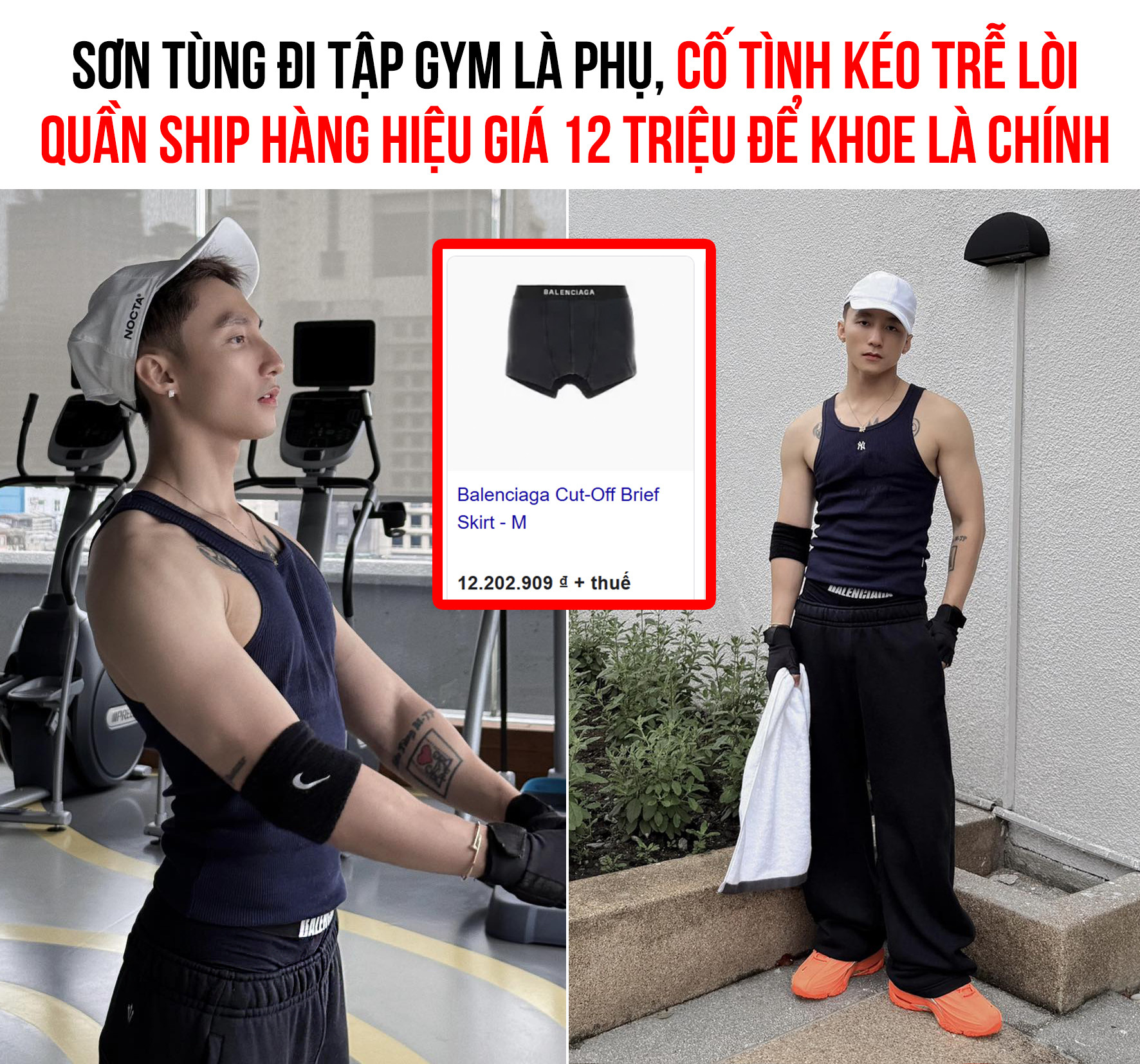 Không những thế, cách lên đồ của nam ca sĩ khi để trễ nải quần nội y bên trong cũng khiến netizen khó hiểu và nhức mắt. Nhưng khi bóc giá outfit đi tập của Sơn Tùng khiến ai cũng phải choáng váng.
