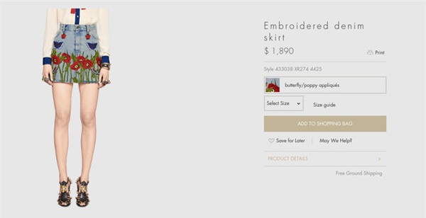 Chân váy denim thêu đính của Gucci được bán với giá 1.890$ - khoảng hơn 41 triệu đồng.