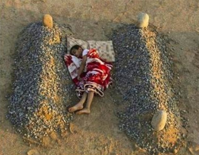 9. Cậu bé ngủ giữa 2 nấm mồ của cha mẹ