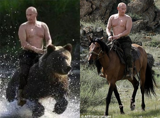 Tổng thống Nga Vladimir Putin từng nổi tiếng với bức ảnh cởi trần, cưỡi ngựa trong kỳ nghỉ tại thành phố Kyzyl, miền Nam Siberia vào năm 2009.