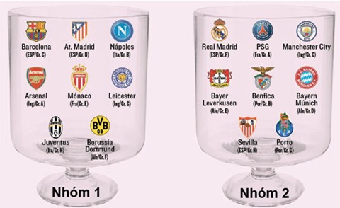 Leicester, Juventus và Dortmund. Nhóm nhì bảng gồm: Real Madrid, PSG,