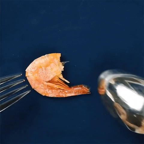 Vậy sao không học ngay cách bóc tôm "quý tộc" này? Bạn chẳng cần chạm tay vào con tôm mà tận dụng ngay thìa, dĩa (nĩa) để lột vỏ thôi.