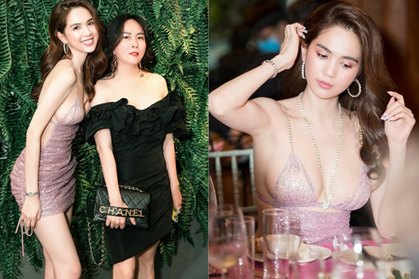 Bộ váy màu hồng tuy có thiết kế cúp ngực nhưng dáng babydoll xoè rộng lại giấu nhẹm đường cong của Ngọc Trinh, nhìn thoáng qua còn tưởng váy cho... bà bầu.