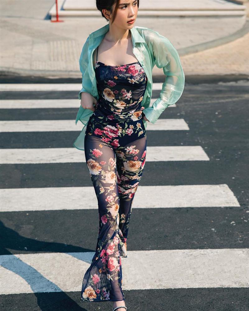 Những mẫu bodysuit ôm sát vốn là item có thể tôn dáng tối đa. Nhưng việc chọn thiết kế quá nhiều họa tiết cầu kỳ, khoác áo sơ mi dáng rộng khiến bộ cánh của Ngọc Trinh khá rối rắm.