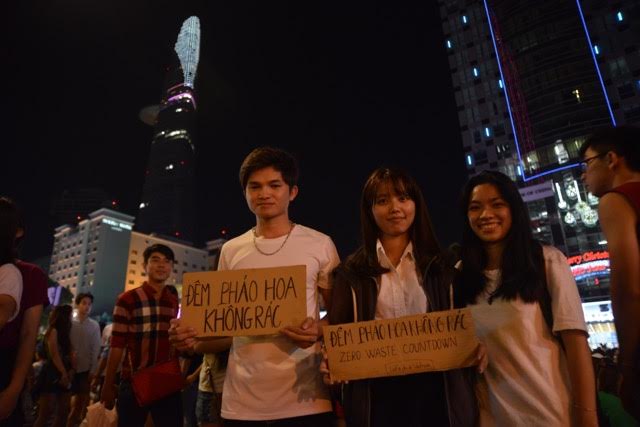 Việc làm ý nghĩa của các bạn sinh viên trường ĐH Kinh tế TPHCM kêu gọi “Đêm pháo hoa không rác”.