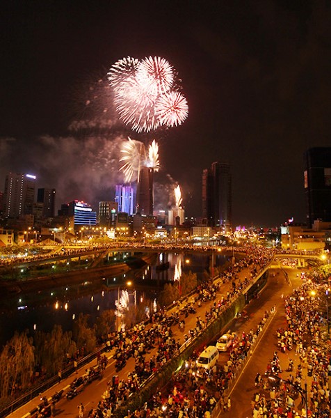 Pháo hoa chào năm mới tại Singapore.