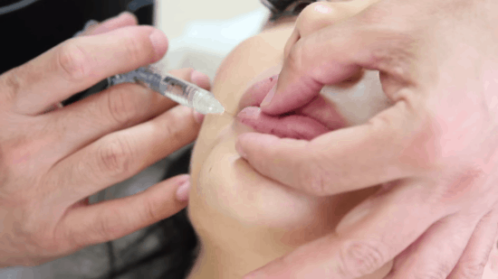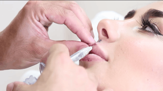 chất làm đầy Filler sẽ được bơm vào vùng môi sau khi gây tê, sau đó sẽ