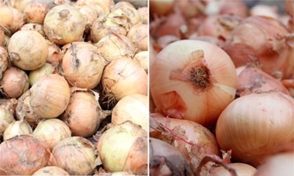 Hành tây Việt Nam (bên trái ảnh) xấu mã, trong khi đó hành tây Trung Quốc (bên phải ảnh) tròn đẹp, căng bóng |