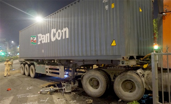 | Chiếc xe đạp nằm dưới gầm xe đầu kéo. Ảnh: Thuận Lâm. |