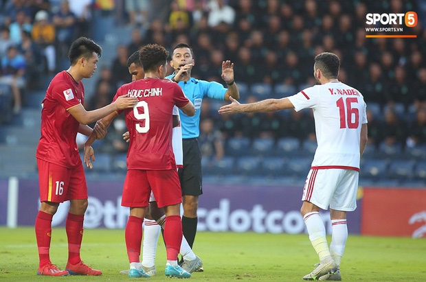Tình huống fan phản ứng cực mạnh khi Đức Chinh bị phạm lỗi thô bạo. Chính những phản ứng của các fan khiến trọng tài đã phải rút thẻ vàng cho cầu thủ U23 UAE.