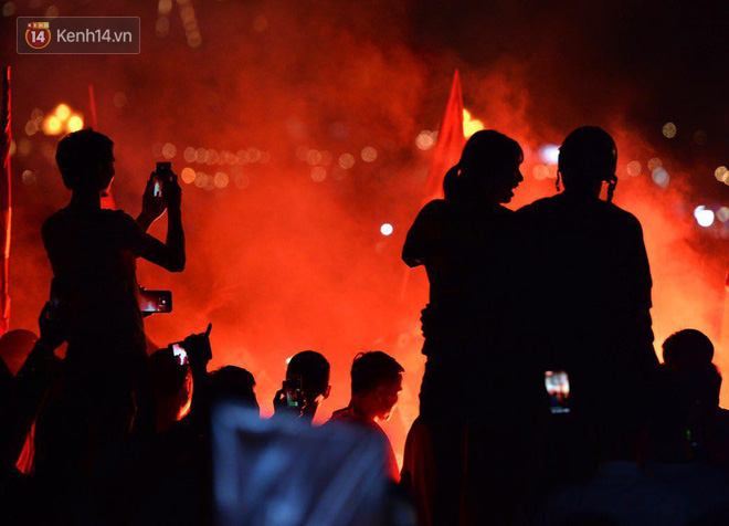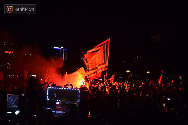 Dù đã về đêm nhưng tinh thần ăn mừng của các cổ động viên vẫn chưa hề giảm nhiệt - Ảnh: Ngọc Thắng