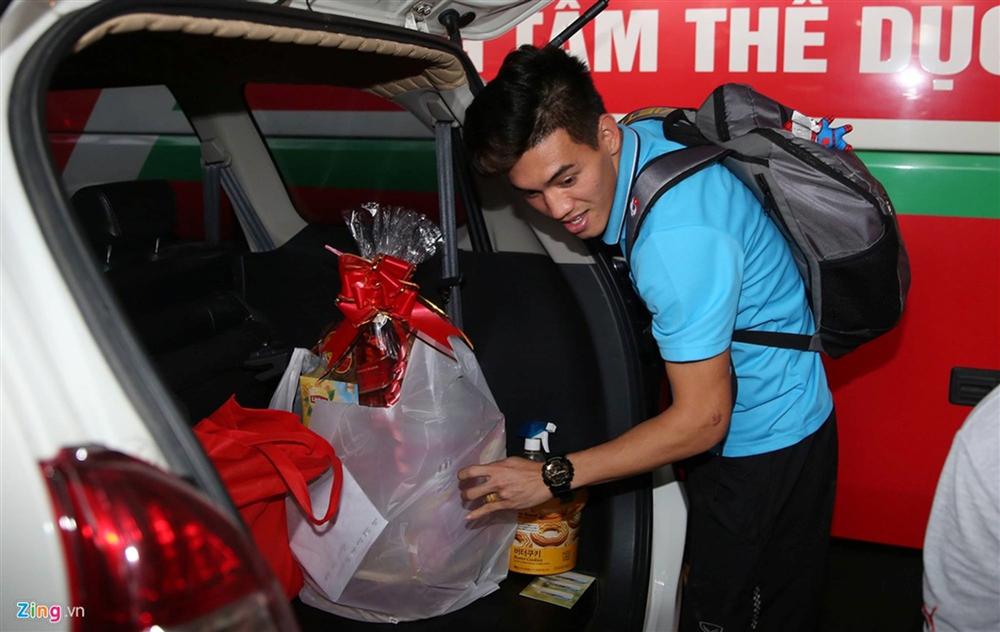 Tiến Linh và Tấn Tài sau khoảng thời gian giao lưu cùng người hâm mộ đã nhanh chóng lên xe taxi để trở về Bình Dương.