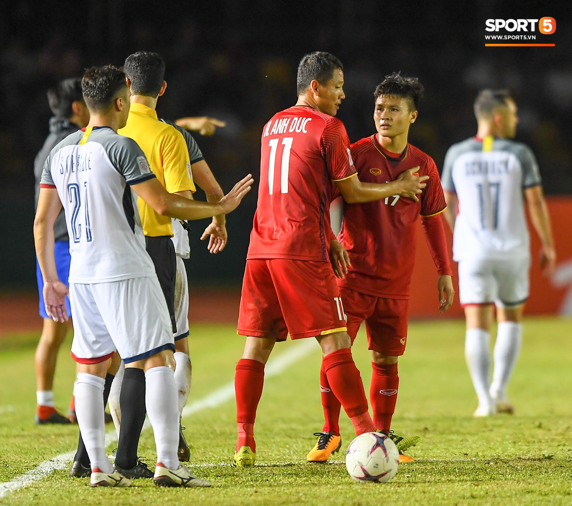 Quang Hải là cầu thủ bị phạm lỗi nhiều nhất bên phía đội tuyển Việt Nam trong trận đấu với Philippines tối 2/12. Tuy nhiên, bên cạnh anh luôn có những đồng đội sẵn sàng lên tiếng bảo vệ.