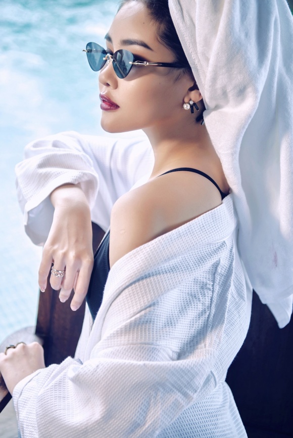 Trong bộ hình mới nhất, Ngân Anh khoe thân hình tuyệt đẹp với trang phục bikini hàng hiệu. Ngân Anh chia sẻ, cô không mất nhiều thời gian cho việc chăm sóc sắc đẹp. Do được ưu ái thừa kế làn da đẹp từ mẹ, Ngân Anh ít khi sử dụng các mỹ phẩm làm đẹp da. Chủ yếu công việc chăm sóc da của Ngân Anh là tẩy trang kỹ lưỡng mỗi khi trang điểm để bảo vệ làn da trắng hồng.