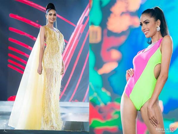 Tối 23/10, Á hậu Phương Nga và dàn thí sinh trình diễn áo tắm và dạ hội tại đêm bán kết Miss Grand 2018 tại Myanmar. Á hậu Việt Nam toả sáng trên sân khấu với vẻ ngoài tự tin và quyến rũ, nhận được nhiều lời khen của khán giả và các chuyên gia sắc đẹp.