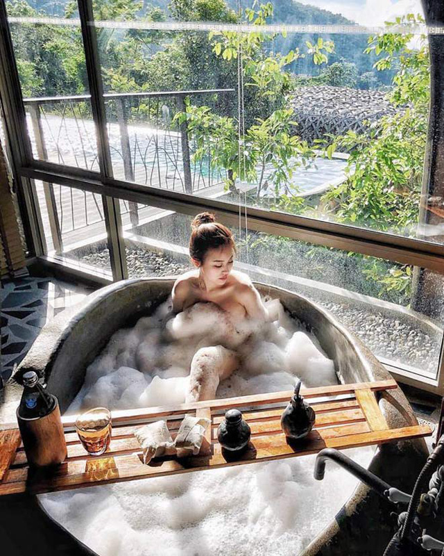 Áp dụng công thức chụp hình đặc trưng, thể hiện rõ cuộc sống hưởng thụ của "rich kid", đó là chụp ảnh trong bồn tắm.