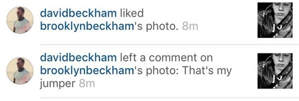 Câu chuyện sẽ chẳng có gì đáng nói nếu Beckham không bấm like và để lại bình luận sặc mùi chơi khăm cậu con trai cả. "Đó là chiếc áo khoác của bố mà", Becks hài hước.