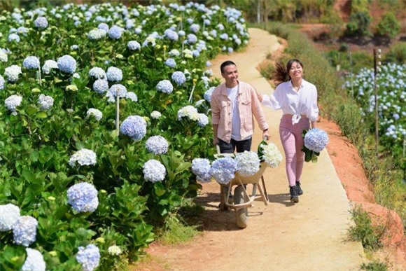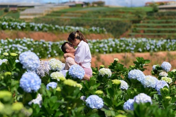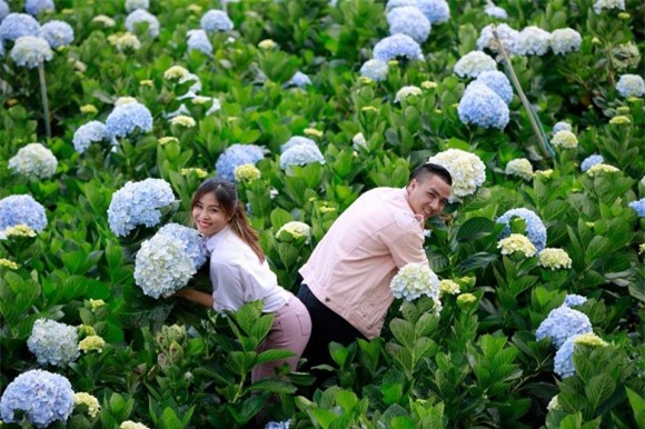 Ở giữa vườn hoa cẩm tú cầu tại Đà Lạt, BTV