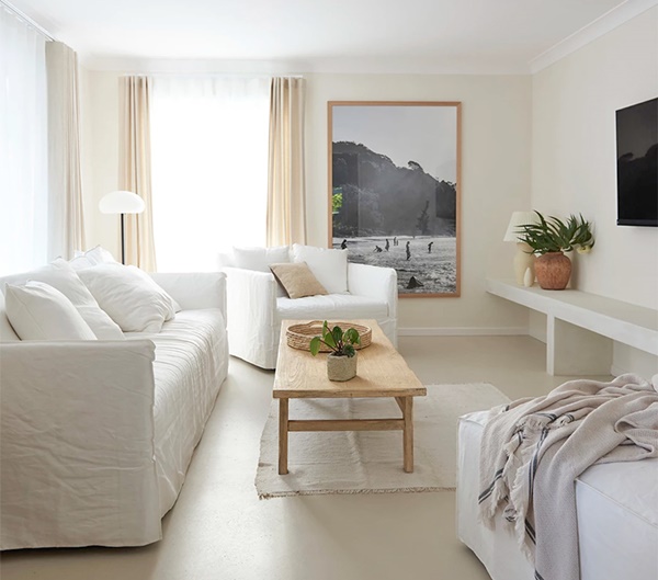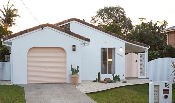 Ngôi nhà nhỏ kiểu nông thôn nghỉ dưỡng cách bãi biển chỉ 800m² của BTV một tạp chí thời trang nổi tiếng được tân trang lại từ ngôi nhà gạch cũ những năm 1990. Sau cải tạo ngôi nhà được khoác tấm áo mới với bức tường trắng và cửa màu hồng cam tươi trẻ. Tông màu hồng cam nhẹ nhàng và khu vườn bên bờ biển là sự kết hợp trẻ trung, tràn đầy năng lượng về chốn nghỉ dưỡng lý tưởng mà ai cũng mê.