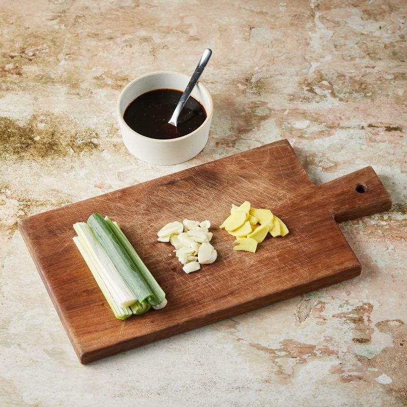 1 hoặc 2 cây cải chíp, 2 cây hành lá, 1 quả ớt (có thể bỏ qua).