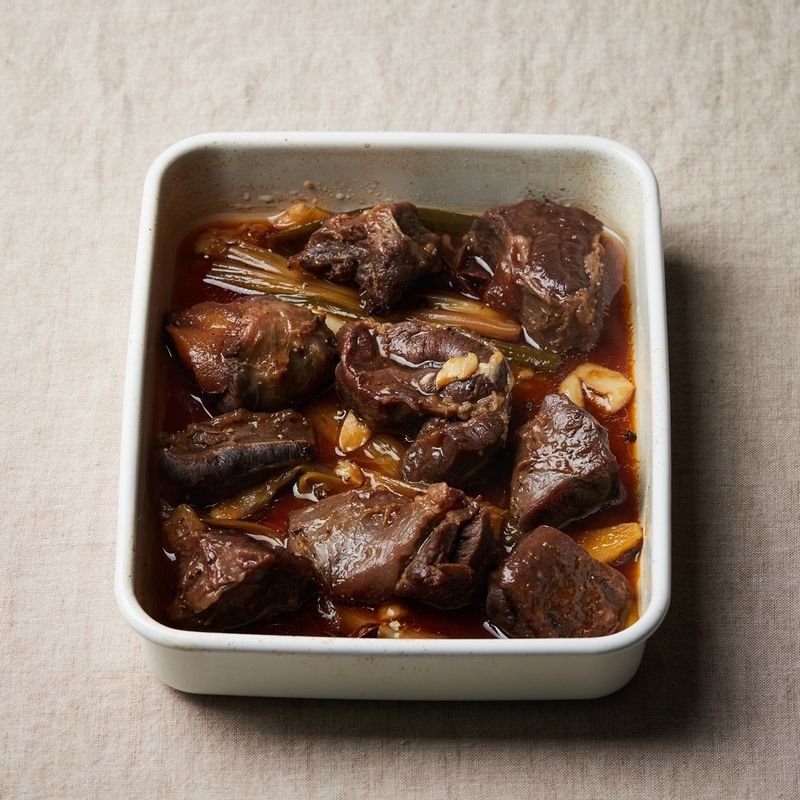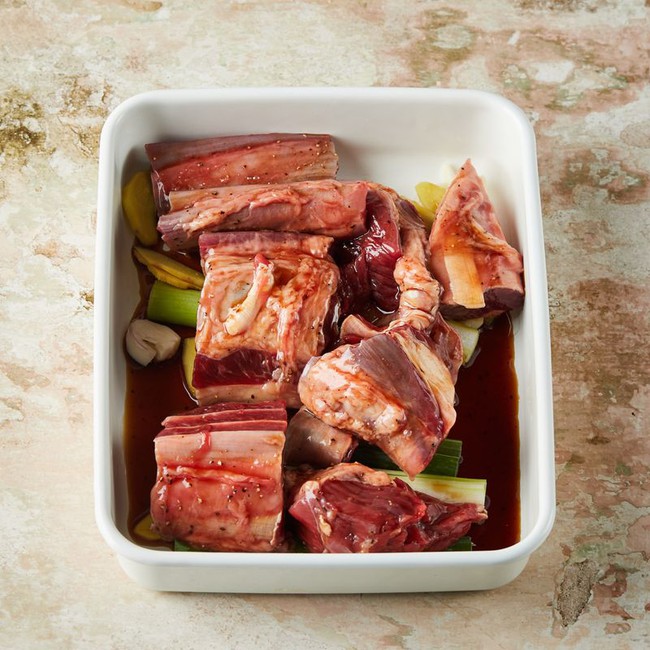 Bước 2: Cho hành baro, gừng, tỏi, hoa hồi và hạt tiêu vào hộp chịu nhiệt/ khay sứ. Tiếp theo cho thịt bò vào rồi rưới đều phần nước sốt đã trộn ở trên lên.