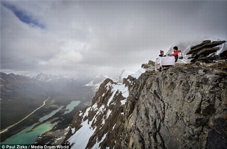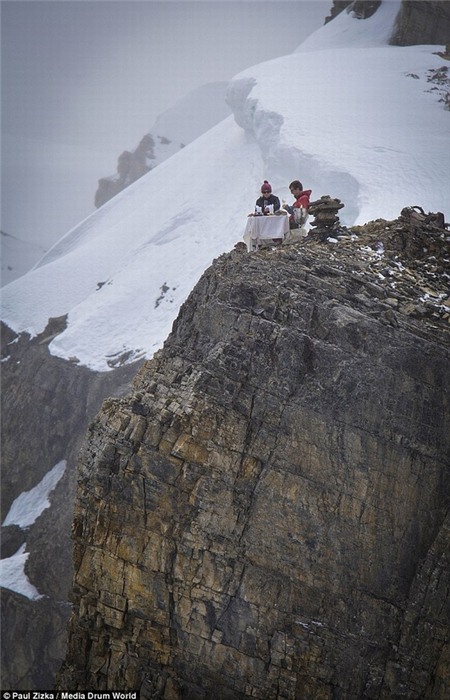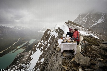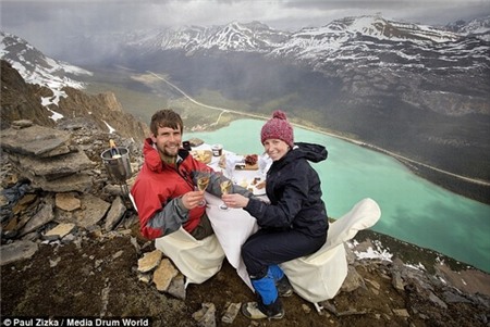 Một cặp vợ chồng đã tổ chức bữa tiệc lãng mạn của mình trên một đỉnh núi cao chót vót.