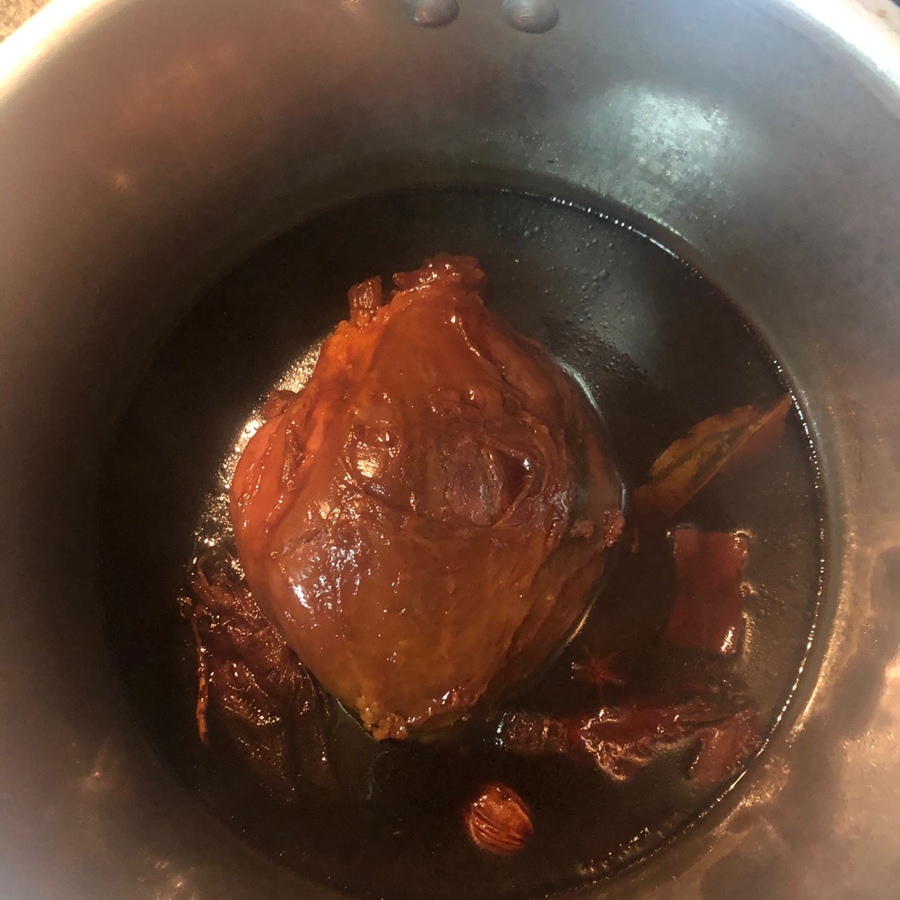 4. Gia vị: 100ml nước tương, 4g muối ăn, 1 mảnh quế, 2 hoa hồi, 1 lá nguyệt quế, 1 thảo quả, ớt khô, 30g đường phèn hoặc đường nâu, 1 mẩu gừng, 3 cây hành lá.