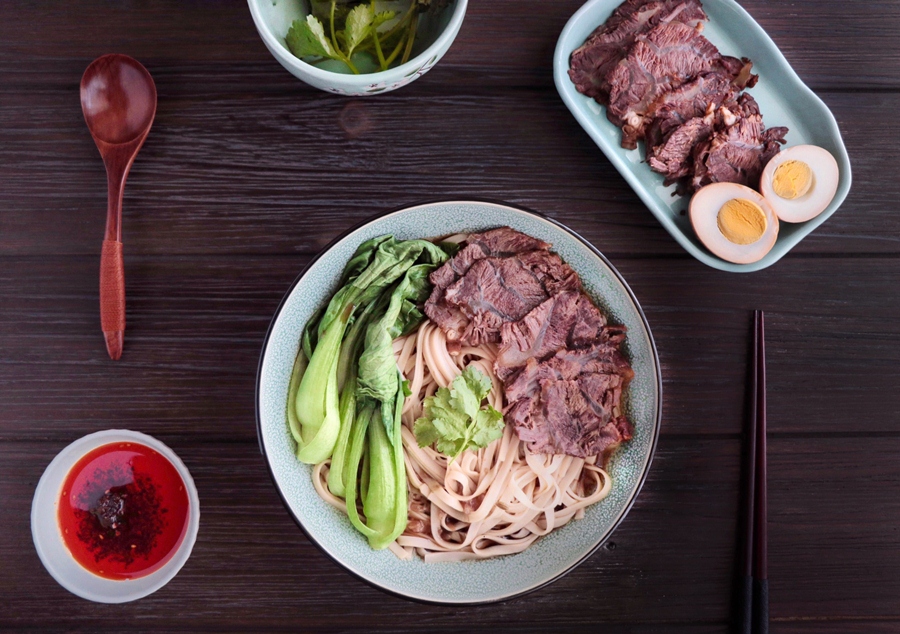 Đậy nắp nồi áp suất và đun sôi sau đó hạ nhỏ lửa, đun khoảng 40 phút. Khi thịt bò chín thì vớt ra để nguội, thái miếng vừa ăn.