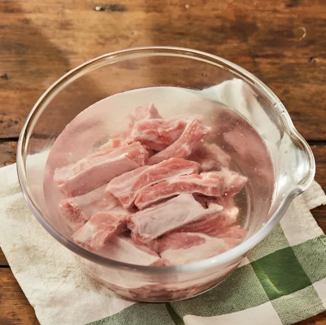 Bước 1: Ngâm sườn heo trong nước muối loãng 30 phút.