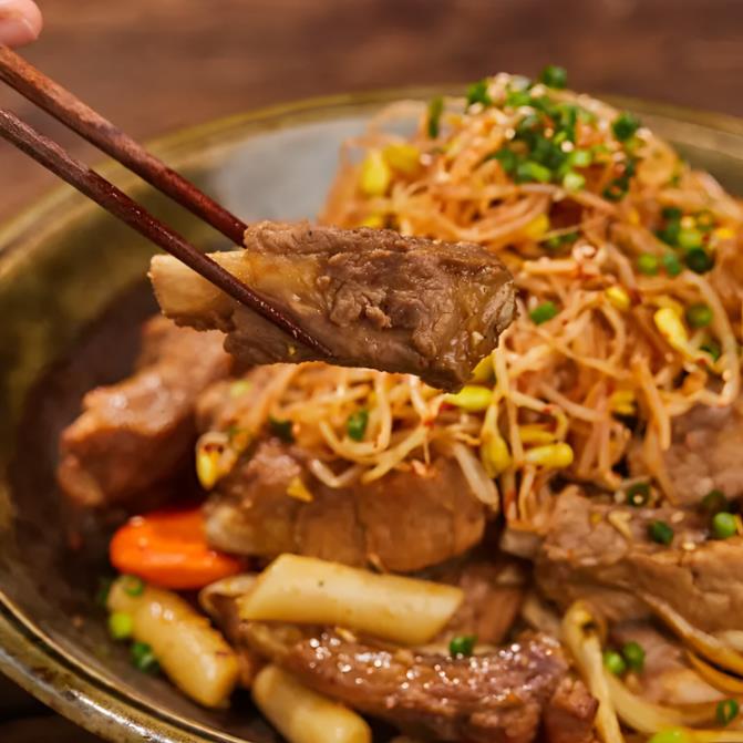 Công thức chế biến món sườn này có chút mất nhiều thời gian nhưng thành quả cuối cùng đảm bảo sẽ không khiến bạn thất vọng. Những miếng thịt mềm, mọng nước, thấm đẫm gia vị kết hợp với giá đỗ có vị cay nhẹ, giòn mát, cuốn hút đến từng miếng cuối cùng. Do có bánh gạo nên món này cung cấp đủ cả tinh bột - đạm - rau, chỉ cần 1 món là xong luôn bữa tối rồi!