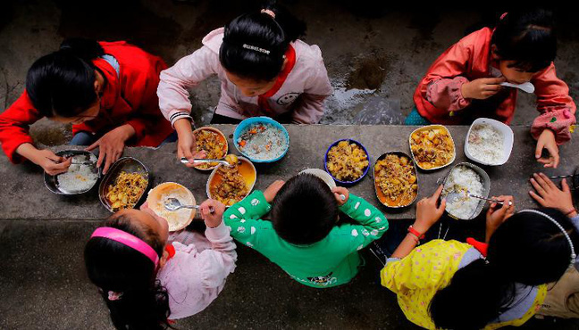 Đây là bữa trưa gồm cơm và món ăn truyền thống của các học sinh ở một trường học miền núi thuộc tỉnh Quý Châu, Trung Quốc. Học sinh tại đây được nhận các suất cơm miễn phí từ chính phủ kể từ năm 2011. Trước đó, các bạn nhỏ ở vùng sâu vùng xa của Trung Quốc chỉ được ăn rất ít hoặc thậm chí phải nhịn đói khi đi học.
