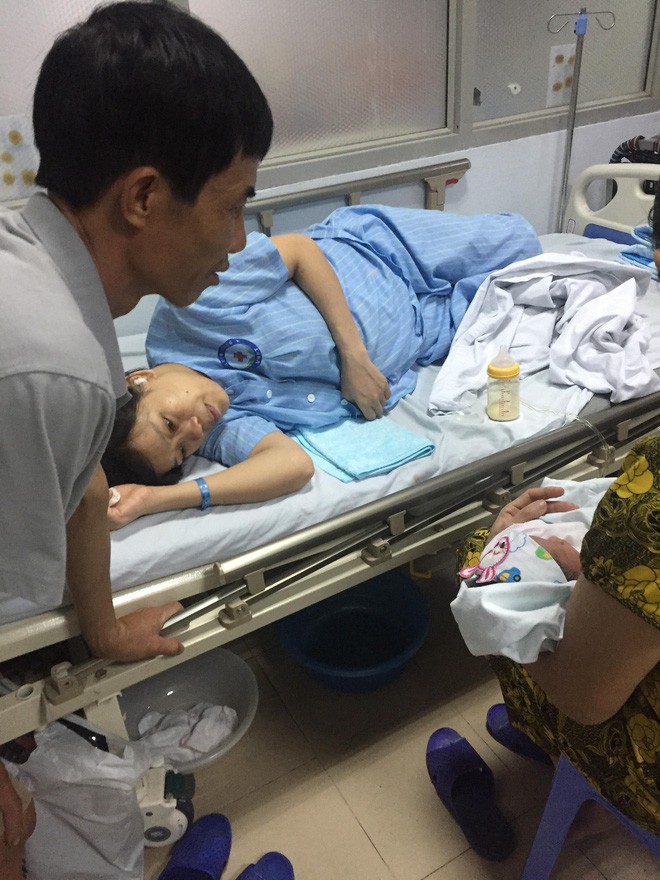 Vợ chồng anh Ven chị Tươi hạnh phúc ngắm nhìn thiên thần nhí. Ảnh: NVCC