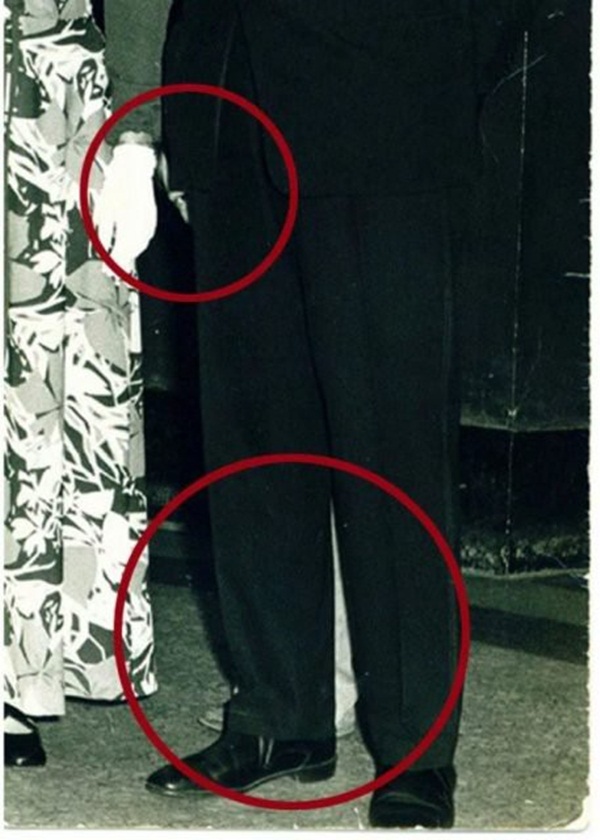 Trước tiên phải nói rằng đây là ý kiến riêng của thành viên này và không chưa từng được kiểm chứng. Theo đó, anh cho rằng bản thân đã nhìn thấy chân của một người nào đó mặc trang phục màu trắng đứng phía sau vị khách mời đứng bên bìa phải bức ảnh. Chưa dừng lại ở đó, sau khi tiến hành zoom vào và làm rõ bức ảnh, dân mạng này còn phát hiện ra điều đáng sợ hơn, đó là con mắt của ai đó đang lấp ló nhìn thẳng vào ống kính máy chụp hình. Với những bằng chứng được đưa ra, người này tin rằng bức ảnh kia đã bị ma ám.