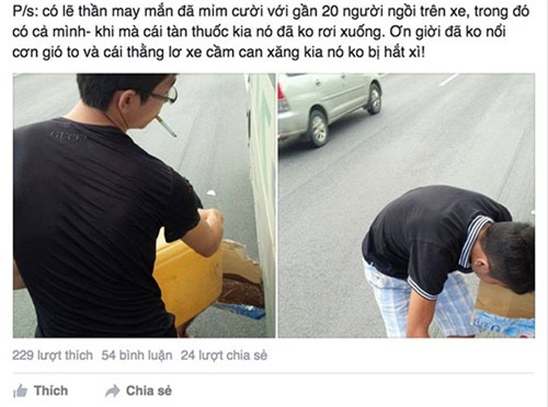 Theo nhận định từ phía người chụp lại khoảnh khắc thì người thanh niên này vừa đổ xăng vừa điềm nhiêm hút thuốc, đặt tính mạng của bản thân và người trên xe vào tính huống rất nguy hiểm.