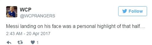 Rất nhiều trang báo quốc tế, các diễn đàn bóng đá đã dùng bức ảnh Lionel Messi té ngã đến trầy mặt làm hình minh họa cho thất bại của Barca trước Juventus.