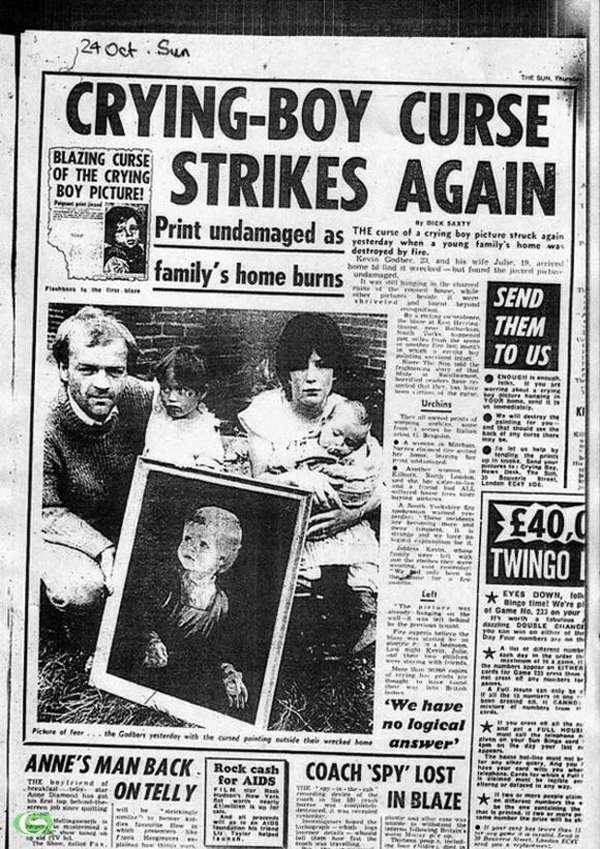 Sau khi tin tức về vụ cháy được đăng tải lên báo, rất nhiều người dân đã sững sờ vì họ cũng đã gặp phải trường hợp tương tự như vậy: gặp hỏa hoạn cháy nhà, mọi thứ đều thành than nhưng những bức tranh thuộc chủ đề Cậu bé khóc thì vẫn cứ nguyên vẹn một cách kỳ lạ. Hàng chục nhân chứng đã trả lời phỏng vấn báo chí và khẳng định mình cũng không rõ tại sao lại như vậy. Sự trùng hợp này bắt đầu khiến mọi người sợ hãi và đồn đoán. Tại sao những ngôi nhà treo tranh Cậu bé khóc đều cháy, và tại sao bức tranh này không bắt lửa?