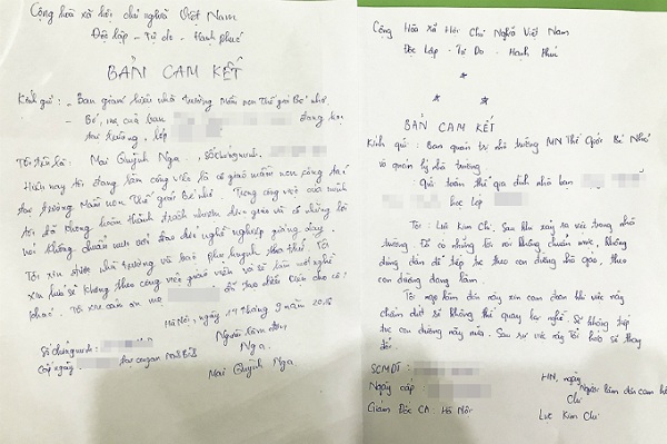 Bản cam kết không làm nghề giáo viên nữa của hai cô Chi và Nga. Ảnh: D.T
