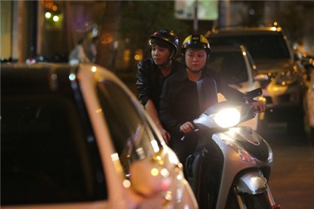 Nam ca sĩ đi xe máy tụ tập cùng vài người bạn mà không có người yêu hot girl là Lily Luta tháp tùng.